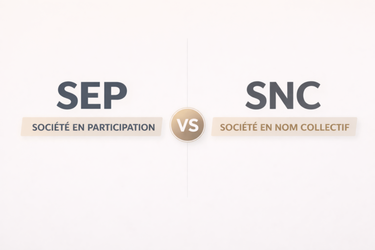 SEP (société en participation) : c’est une société « occulte », c’est-à-dire non immatriculée et sans identité juridique. Il s’agit en fait d’un contrat signé entre plusieurs associés. Les formalités juridiques sont souples. À choisir pour les opérations simples, sans besoin de recourir à une banque.